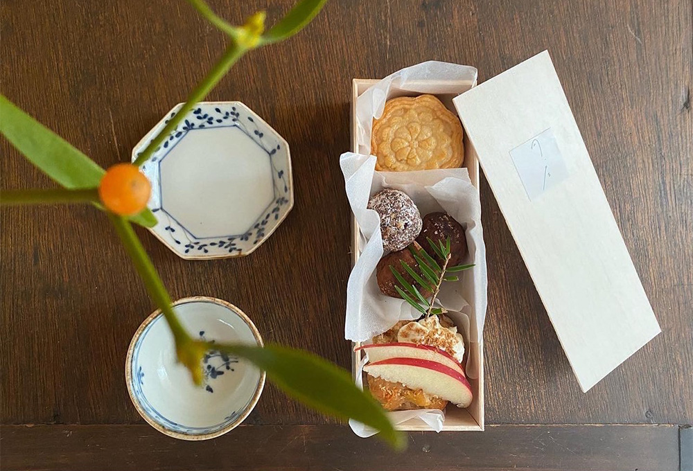 月餅や発酵あんこの焼き菓子などを詰めた季節のBOXを販売いたします。遠方の方はぜひオンラインショップをご利用ください。販売内容や開始日時は、公式LINEやインスタグラムにてお知らせいたします。